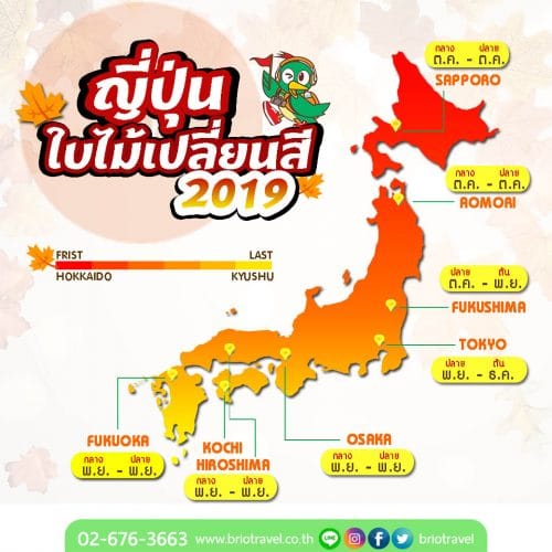 ช่วงเวลาใบไม้เปลี่ยนสี : ปลายเดือนตุลาคม – ต้นเดือนพฤศจิกายน 2019